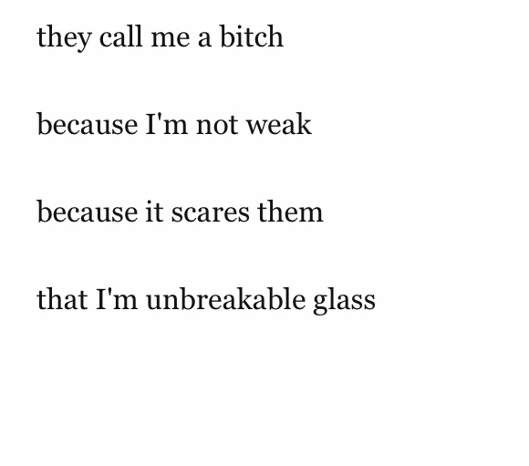 they call you a bitch because you’re not weak because it scares them that you’re unbreakable glass