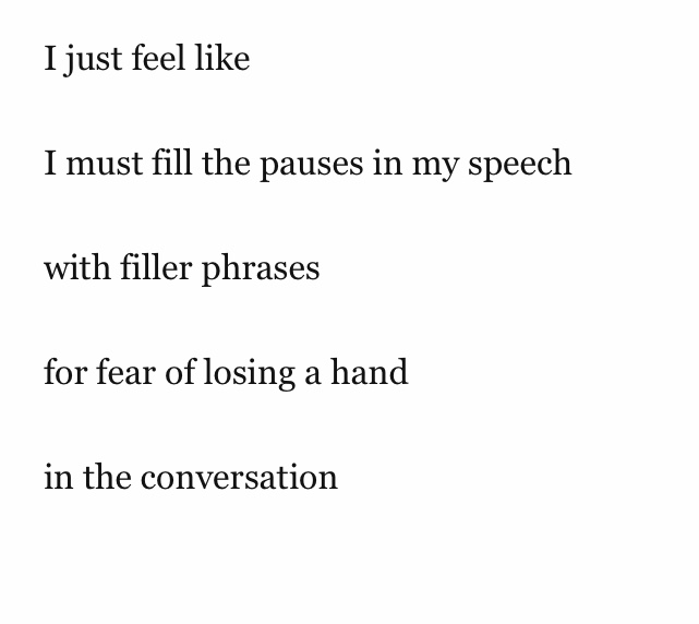 I just feel like I must fill the pauses in my speech with filler phrases for fear of losing a hand in the conversation