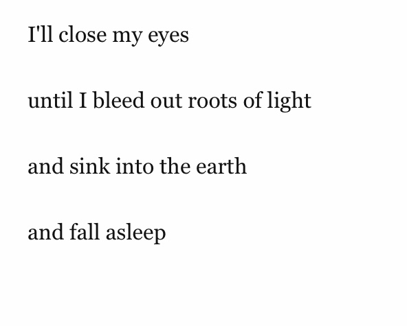 close your eyes until you bleed out roots of light and sink into the earth and fall asleep