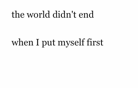 the world didn’t end when she put myself first