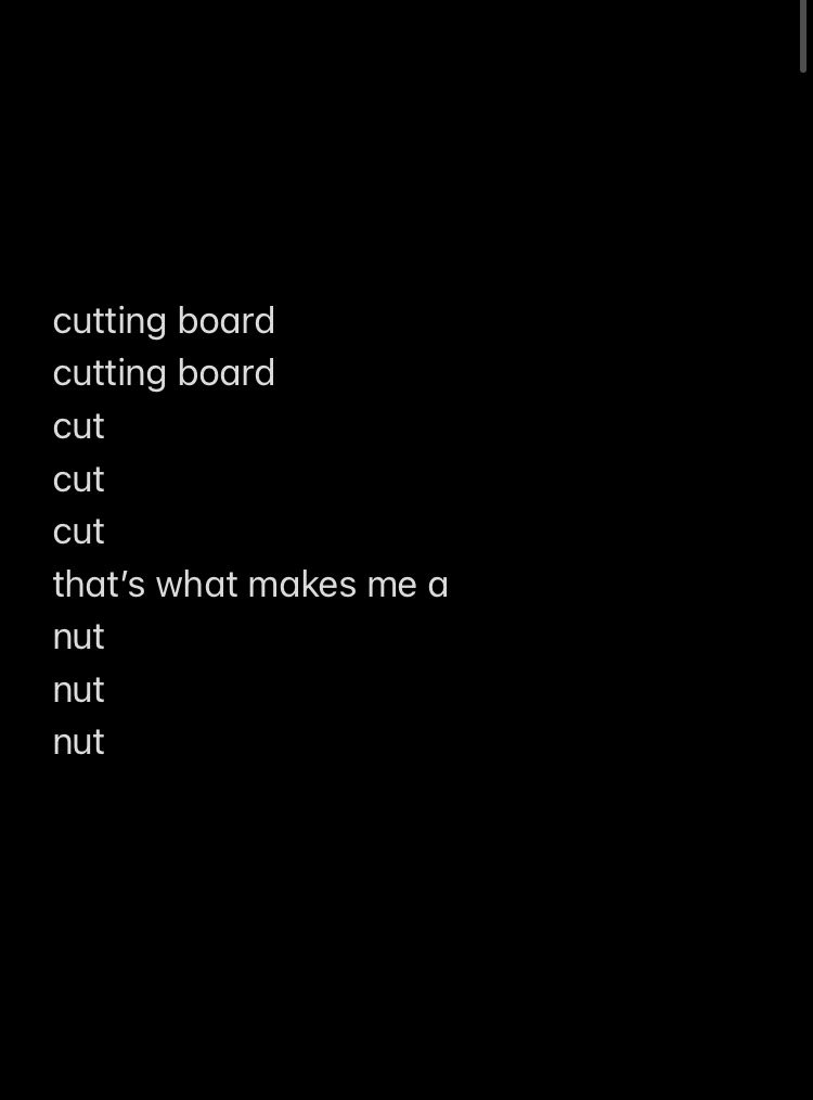 cutting board cutting board cut cut cut that’s what makes me a nut nut nut
