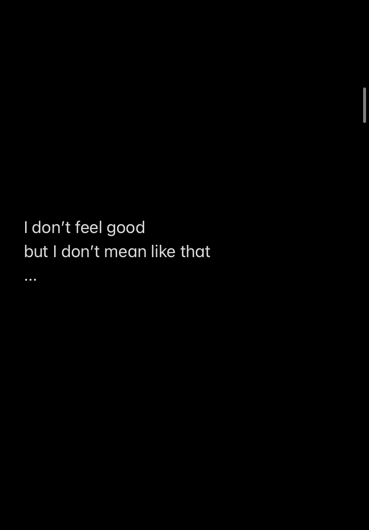 I don’t feel good but I don’t mean like that I feel bad I feel sad I am wrong in the head I don’t know how I’m supposed to feel but I know I shouldn’t feel like this are you okay? you might ask me and I might say I am or I might tell you the truth and tell you that I’m good enough because that’s the best I can hope for right now it’s like I tasted heaven but I wasn’t really there I simply passed by the gate because I lost the key that was chained to my neck and now it’s in Peter’s hand and he refuses to let go