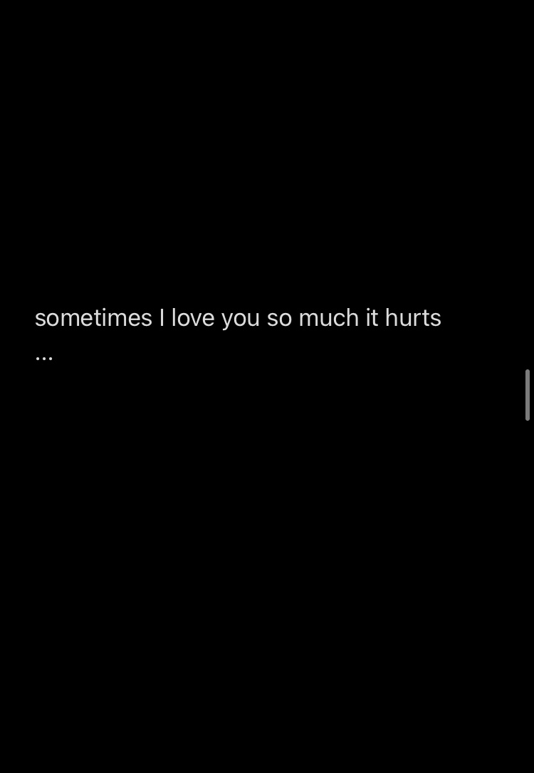 sometimes I love you so much it hurts like my heart tightens and hurts in the way ripping a scab off new skin feels good but even though it only hurts sometimes I love you always scrapes and all